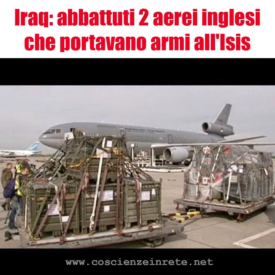 Forze irachene hanno comunicato di aver abbattuto due aerei britannici che rifornivano di armi il gruppo terrorista dello Stato Islamico (ISIS). Lo ha annunciato il Lunedì il parlamentare iracheno Hakem al-Zameli.